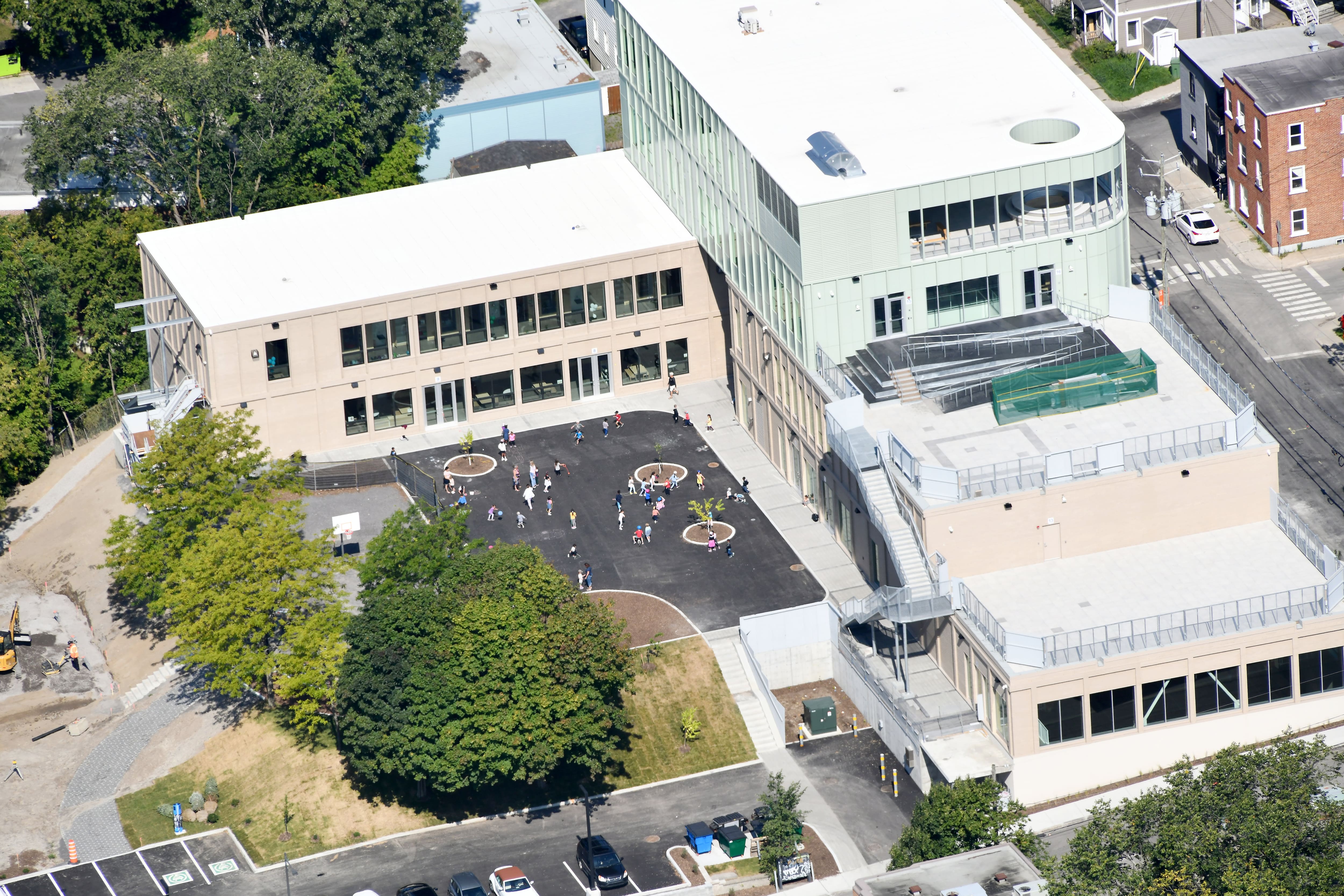L’école primaire Élisabeth-Turgeon, à Rimouski, a beau être un vieux bâtiment de plus de 60 ans, ses fenêtres sont teintées et munies de toiles solaires afin de parer la chaleur.