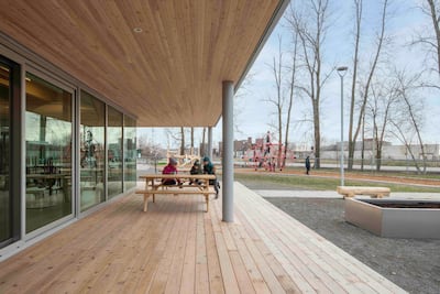 Mais quelle est cette étrange cheminée triangulaire qui pointe au-dessus du Lab-École de Shefford? Comme la chaleur monte, cet élément architectural permet de l’évacuer par le haut, explique Pierre Thibault. L’ouverture peut aussi être télécommandée en fonction de la météo, mentionne-t-il.